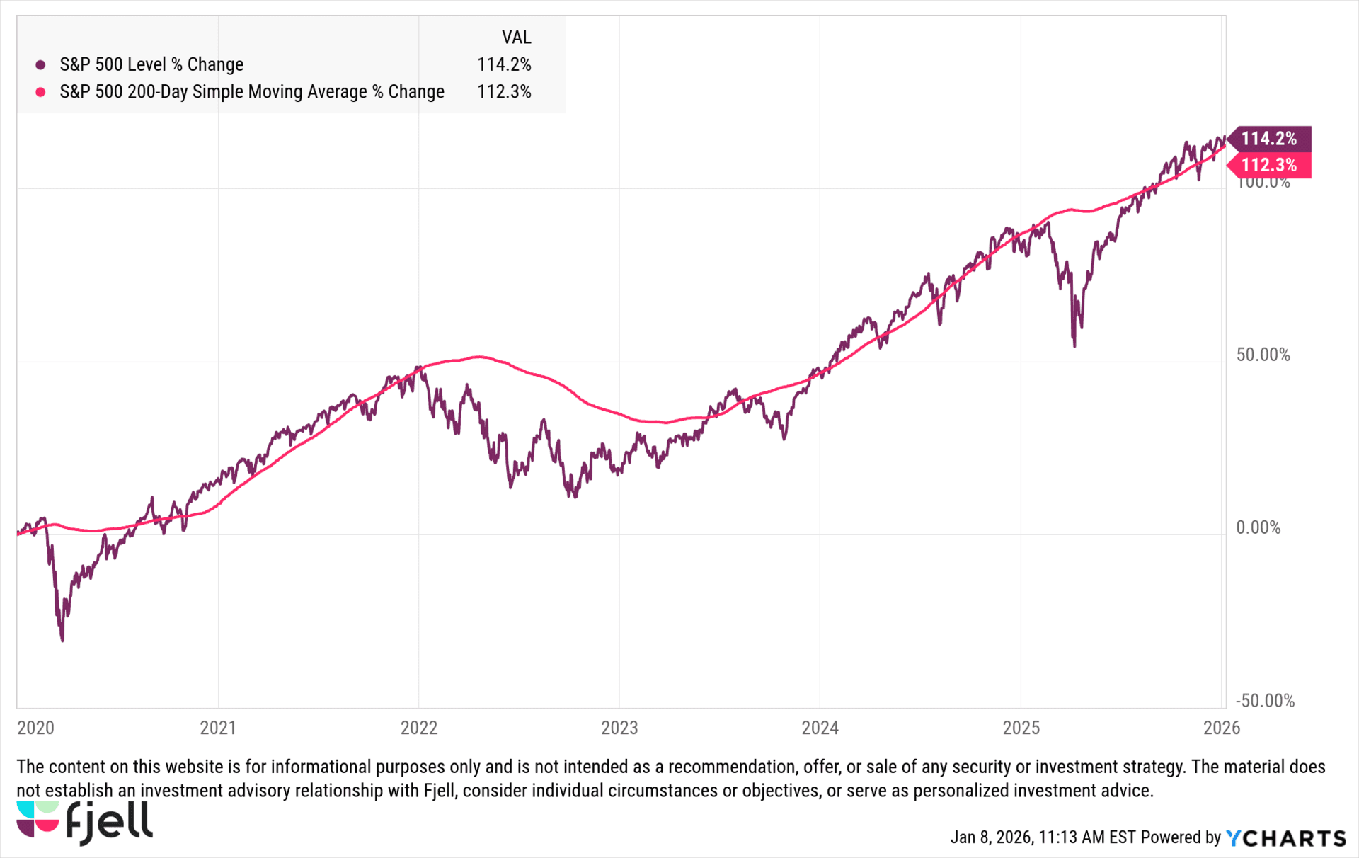 S&P 500 Cumulative Return and it’s 200 Day Simple Moving Average
