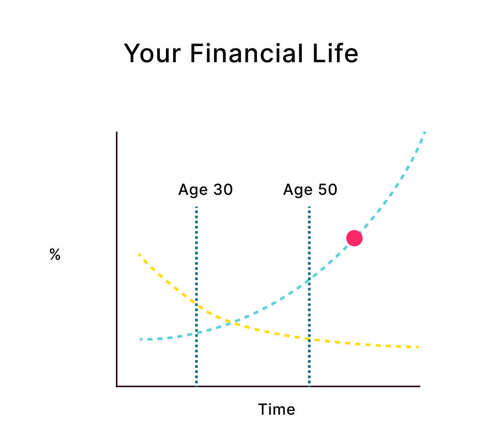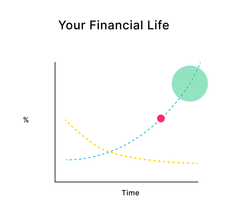 A long time ago, I made this graphic. It is a simple picture of how your money grows over a lifetime.