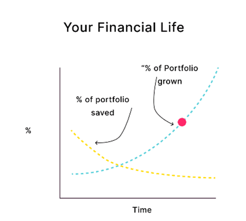 When you are starting out, your savings rate does much of the heavy lifting for you. If you have a $100,000 portfolio and you save $800 a month - your contributions make up about 10% of your portfolio value.